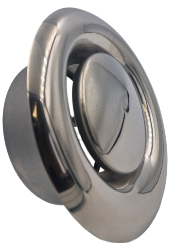 - Materiał: Anemostat wykonany jest z wysokiej jakości stali nierdzewnej chromo-nikiel, co zapewnia długotrwałą odporność na korozję oraz uszkodzenia mechaniczne.