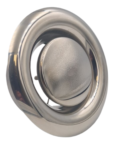 - Materiał: Anemostat wykonany jest z wysokiej jakości stali nierdzewnej chromo-nikiel, co zapewnia długotrwałą odporność na korozję oraz uszkodzenia mechaniczne.