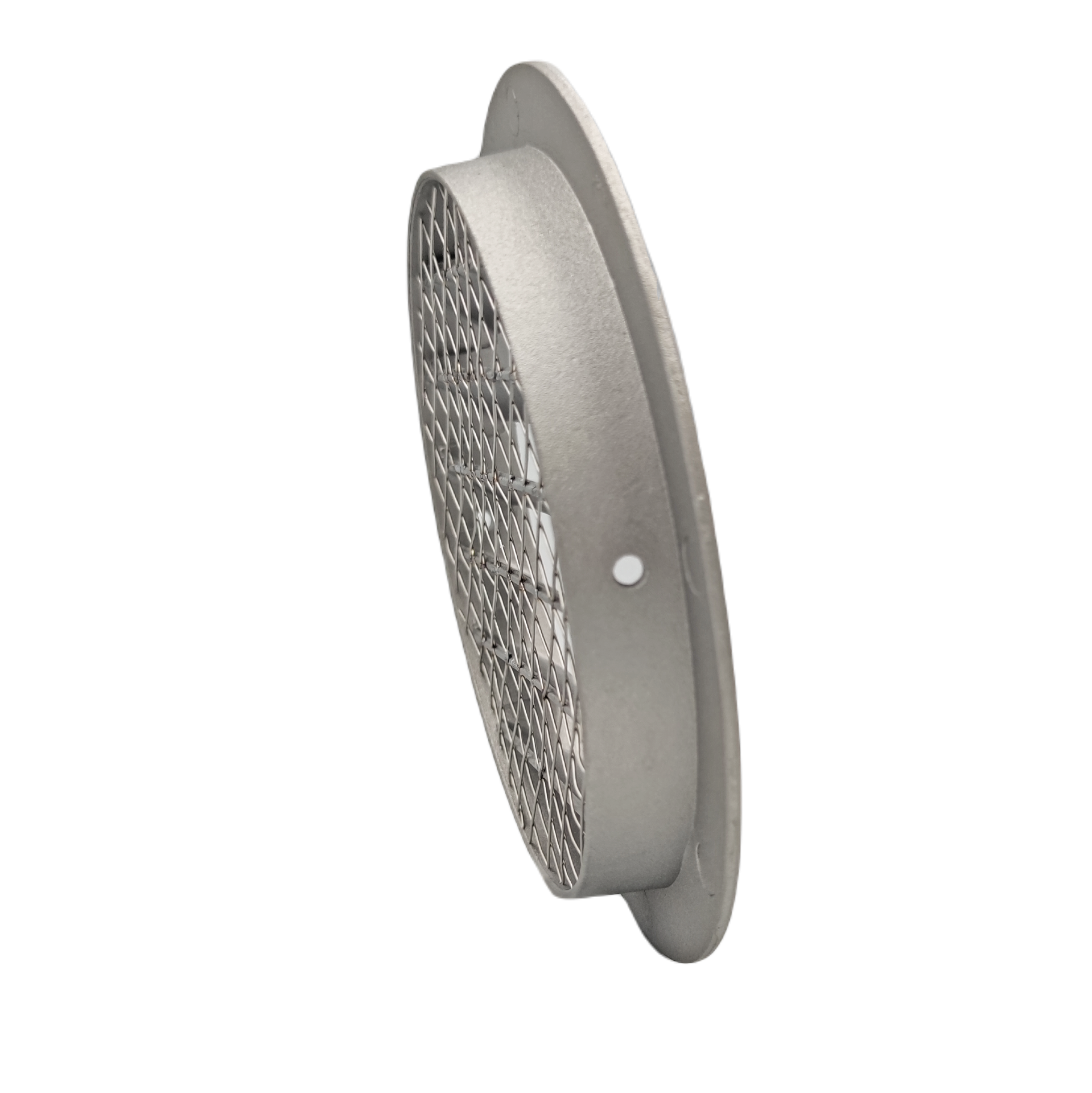Okrągła kratka wentylacyjna przystosowana do montażu wewnątrz, jak i na zewnątrz budynku.