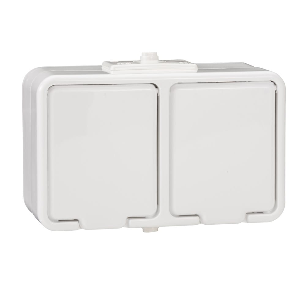 Gniazdo natynkowe podwójne z uziemieniem, IP44, biały CEDAR