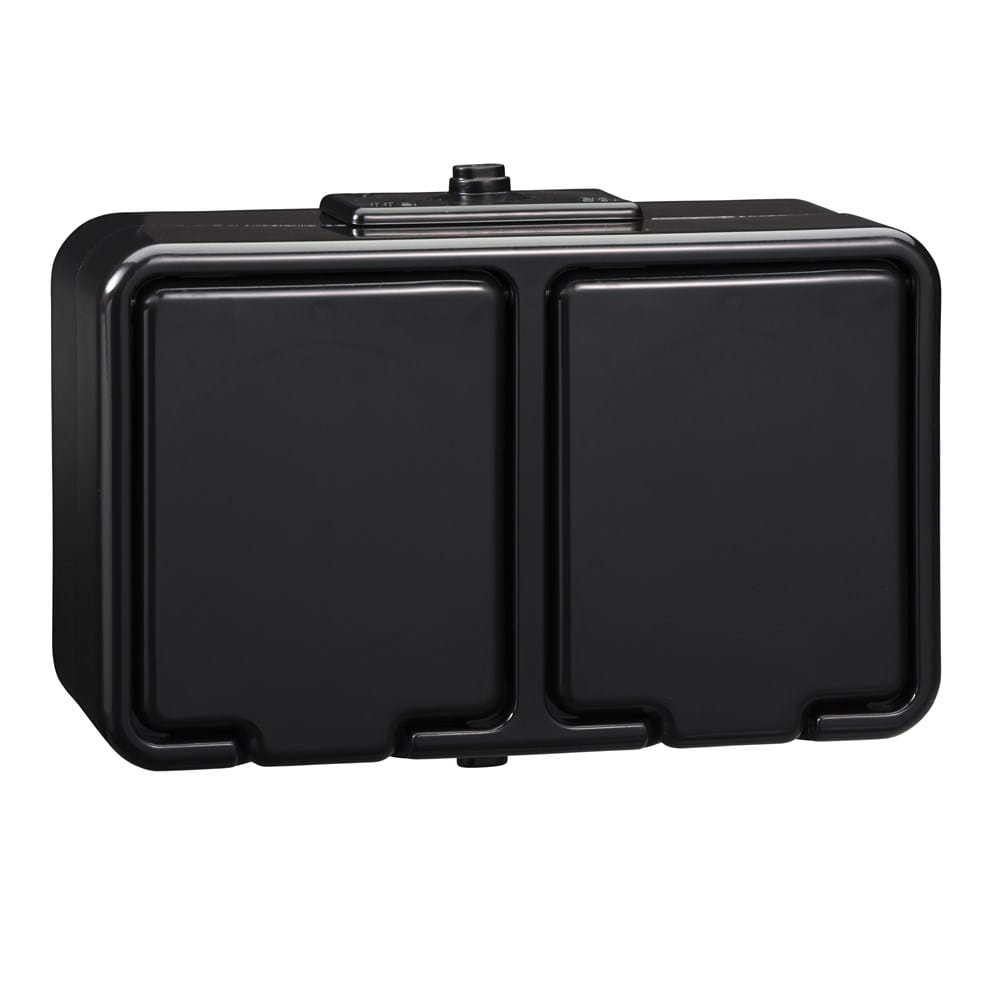 Gniazdo natynkowe podwójne z uziemieniem, IP44, czarny CEDAR