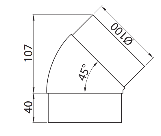 Kolano okrągłe fi 100 mm, 45 stopni