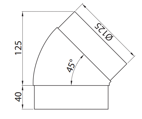 Kolano okrągłe fi 125 mm, 45 st . białe