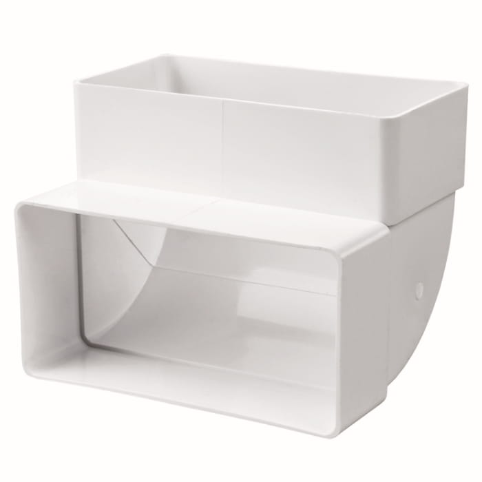 Kolano pionowe umożliwiające połączenie kanałów w ułożeniu pionowym pod kątem 90 stopni. Kolano typu mufowego (kanał wchodzi do środka). Łatwy montaż bez specjalistycznych narzędzi „na wcisk”, nie wymaga spoiwa np. w postaci kleju, lekka konstrukcja, estetyczny wygląd.
