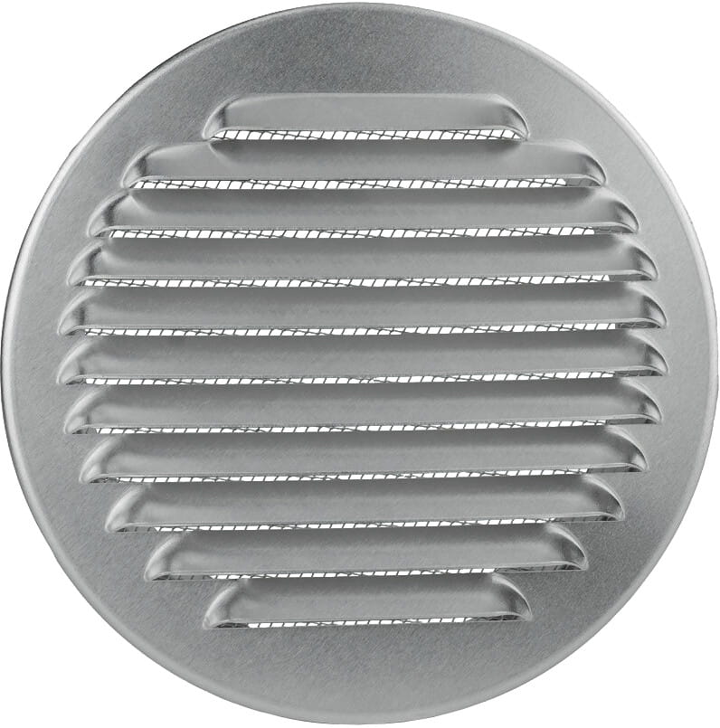 Okrągła kratka wentylacyjna przystosowana do montażu wewnątrz, jak i na zewnątrz budynku.