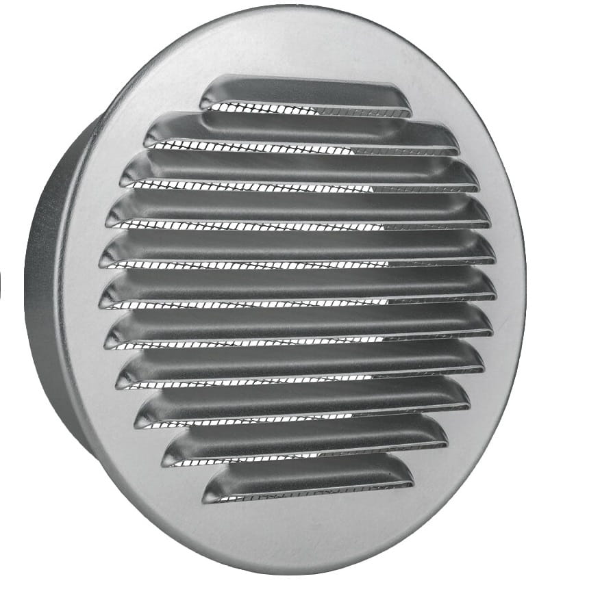 Okrągła kratka wentylacyjna przystosowana do montażu wewnątrz, jak i na zewnątrz budynku.