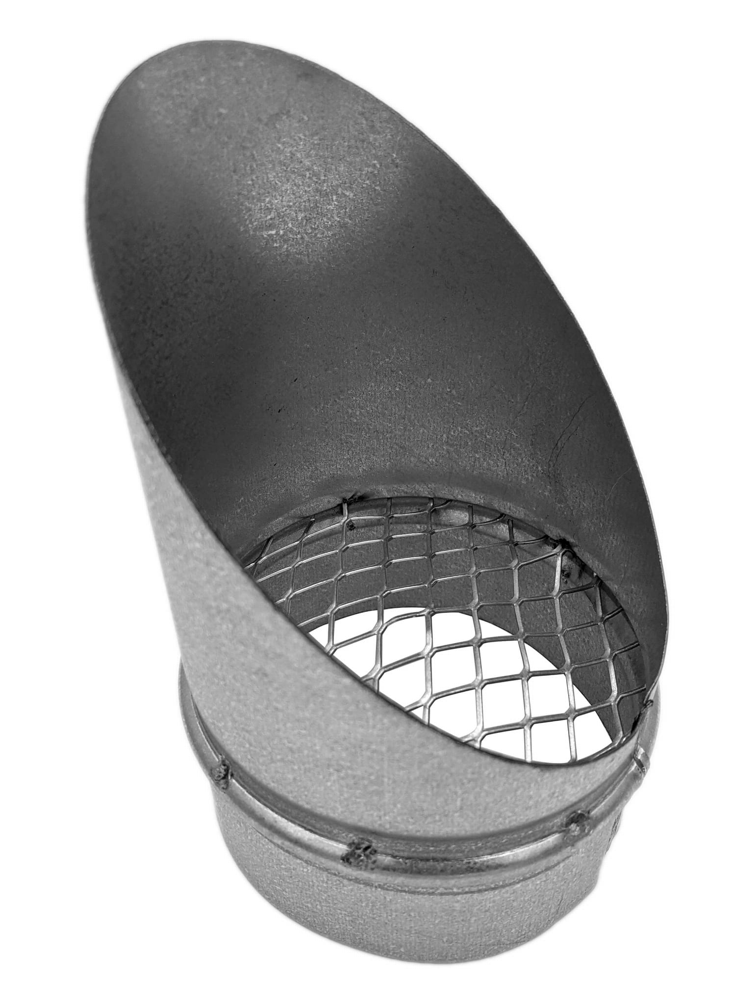 Krócieć kątowy wykonany jest nyplowo do bezpośredniego wsunięcia do okrągłego kanału SPIRO. Siatka o oczku 10 x 10mm umiejscowiona tuż za końcem kanału chroni wylot przed dostaniem się ptaków, większych owadów, liści oraz innych zanieczyszczeń. Skośny wykonany pod kątem 45 stopni okapnik chroni wlot przed opadami atmosferycznymi i nadaje estetyczny kształt.