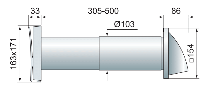 Nawiewnik składa się z 2 kratek wentylacyjnych (wewnętrznej i zewnętrznej) oraz okrągłego kanału teleskopowego.