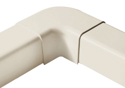 Kolano płaskie łączące kanały na powierzchni płaskiej pod kątem 90 stopni. Element wyprodukowany z samogasnącego PVC odpornego na promienie UV. System nadaje się do instalacji systemów klimatyzacyjnych typu mono-split. Dzięki swoim rozmiarom łatwo zmieścić wężyki do odprowadzania skroplin, przewody elektryczne czy izolowane rurki miedziane.
